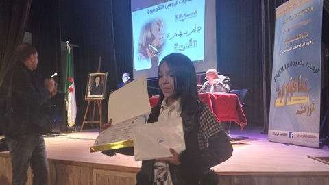 وتحصلت أمال برحمة من تمنراست على الجائزة الأولى للطبعة الثالثة للمسابقة الوطنية لجائزة “أم سهام” عن قصتها “بيوتيكا”