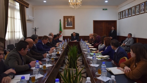 ترأس السيد محمد عبد الحفيظ هني، وزير الفلاحة والتنمية الريفية، بمقر وزارة الفلاحة اجتماعا تنسيقيا خصص لمتابعة انجاز وتنفيذ مختلف البرامج وكبرى الملفات التابعة لقطاع الفلاحة والتنمية الريفية. وبحسب بيان وزارة الفلاحة، فقد تم الاجتماع بحضور الإطارات المركزية للوزارة ورؤساء ومسؤولي المجمعات والدواوين تحت الوصاية. وتم خلال الاجتماع، استعراض ومتابعة تنفيذ مختلف الملفات التي تندرج في إطار التنفيذ الصارم للتعليمات والتوجيهات السامية للسيد رئيس الجمهورية التي أسداها خلال الجلسات الوطنية للفلاحة المنظمة بتاريخ 28 فيفري 2023، كما خصص الاجتماع إلى التموين بالمنتوجات الفلاحية ذات استهلاك الواسع خلال شهر رمضان المعظم. وفيما يتعلق بالتزويد المنتظم بالمواد الفلاحية، تم التأكيد على الحرص على التموين المنتظم للسوق خلال شهر رمضان المعظم بالمواد الفلاحية ذات الإستهلاك الواسع؛ واستعراض الجهاز الموضوع لهذا الغرض عبر نظام البيع المباشر للمواطنين من طرف المجمعات العمومية تحت الوصاية، وهي الديوان الوطني لتغذية الأنعام “ONAB” اللحوم البيضاء والبيض؛ المجمع العمومي للحوم الحمراء “ALVIAR”: اللحوم الحمراء بسعر محدد الديوان الوطني المهني للخضر واللحوم ” ONILEV”: المنتوجات الفلاحية الطازجة والمجمعين العموميين لتثمين المنتجات الفلاحية واللوجستيين “AGROLOG” و”GVAPRO”: مختلف المنتوجات الفلاحية (الخضر والفواكه والتمور)؛ والديوان الجزائري المهني للحبوب “OAIC” بما فيها كل المنتوجات المتعلقة بتحويل الحبوب والبقول الجافة، بأسعار محددة؛ إلى جانب المجمع العمومي للحليب “GIPLAIT” وكل المنتوجات المتعلقة بالحليب ومشتقاته. وفيما يتعلق بمتابعة انجاز البرامج القطاعية، تم استعراض النظام والجهاز المخصص لتموين السوق باللحوم الحمراء بسعر محدد بـ1200دج واللحوم البيضاء بـ350دج؛ والإطلاق الميداني لبرنامج زراعة دوار الشمس على مساحة 45.000 هكتار فيما يخص الشطر الخاص بسنة 2023، وذلك لأجل بعث برنامج إنتاج الزيت الوطني؛ وتم استعراض مدى تقدم برنامج تطوير الأشجار المثمرة المقاومة RUSTIQUE وشجرة الأرغان ARGANIER؛ وكذا استعراض مدى تقدم برنامج تعريف الحيواني الخاص بضبط قوائم الأبقار الموجهة للتكاثر في إطار إعادة بعث شعبة انتاج الحليب؛ و إطلاق برنامج تربية الماعز وتشجيعه من خلال مختلف الأجهزة؛ مع استعراض ملف توسيع طاقات التخزين الخاصة بشعبة الحبوب والمنتوجات الإستراتيجية الأخرى وذلك بالتنسيق مع كافة الجهات المعنية؛ واستعراض ملف مدى تقدم انجاز برنامج إعادة تهيئة وتوسيع السد الأخضر. بالمقابل، تم استعراض مدة تقدم الأشغال الخاصة بإطلاق “الإحصاء العام للفلاحة” “RGA”، حيث تكمن أهمية هذه العملية الوطنية في التعرف وإبراز القدرات المنتجة للبلاد والتي تندرج ضمن أهداف إنجاز مخطط عمل الحكومة وورقة طريق القطاع، مع توجه خاص نحو تشجيع إنتاج القمح الصلب، الذرة والبقوليات؛ والتحضير لعملية الانتخابات لإعادة تجديد المجالس المهنية المشتركة “CNIF” المنتهية عدتها. تجدر الإشارة، إلى أن هاته الإجراءات، تندرج في إطار إنجاز وتنفيذ التعليمات السامية للسيد رئيس الجمهورية لغرض السهر على التموين الدائم والمنتظم بكافة المنتوجات الفلاحية ذات الإستهلاك الواسع بالكمية والنوعية اللازمة. كما تهدف، إلى تقييم ومتابعة إنجاز مختلف البرامج الموكلة للقطاع من خلال المتابعة الميدانية والمستمرة.