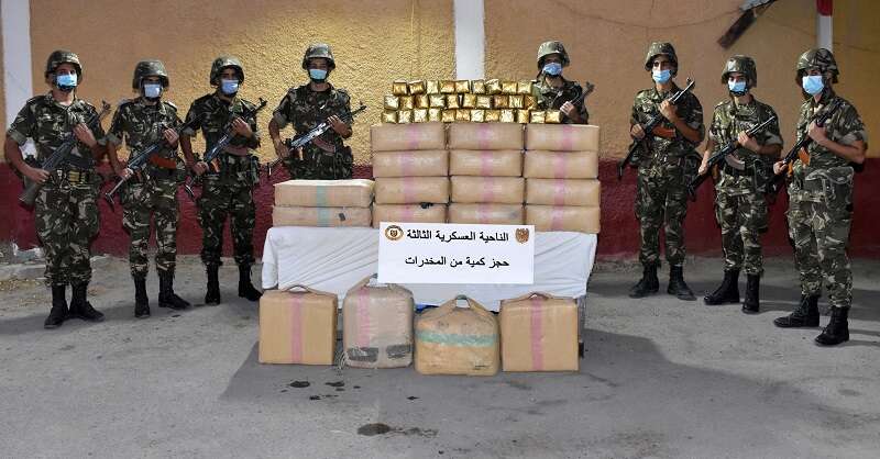 ومن بين تلك العمليات توقيف خمسة عناصر دعم للجماعات الإرهابية، حسب ما أفاد به بيان لوزارة الدفاع الوطني. وجاء في البيان: “في إطار مهامها النبيلة في الدفاع عن التراب الوطني وتأمينه ضد مختلف التهديدات، نفذت وحدات ومفارز للجيش الوطني الشعبي، خلال الفترة الممتدة من 22 إلى 28 سبتمبر 2021 عديد العمليات التي تؤكد التزام قواتنا المسلحة بالحفاظ على الأمن والسكينة ببلادنا”، حيث أنه في “إطار مكافحة الإرهاب، أوقفت مفارز مشتركة للجيش الوطني الشعبي خمسة عناصر دعم للجماعات الإرهابية في عمليات منفصلة عبر التراب الوطني”. وفي إطار محاربة الجريمة المنظمة ومواصلة للجهود الحثيثة الهادفة إلى التصدي لآفة الاتجار بالمخدرات ببلادنا، أوقفت مفارز مشتركة للجيش الوطني الشعبي بالتنسيق مع مختلف مصالح الأمن بإقليمي الناحيتين العسكريتين الثانية والثالثة، “11 تاجر مخدرات وأحبطت محاولات إدخال كميات ضخمة من المخدرات عبر الحدود مع المغرب تقدر بـ39 قنطارا و46 كيلوغراما من الكيف المعالج في حين تم توقيف 19 تاجر مخدرات آخرا وحجز 97956 قرصا مهلوسا خلال عمليات مختلفة عبر النواحي العسكرية الأخرى”. ومن جهة أخرى، أوقفت مفارز للجيش الوطني الشعبي بكل من تمنراست وعين قزام وبرج باجي مختار وجانت، 201 شخصا وضبطت 12 مركبة و124 مولدا كهربائيا و(98) مطرقة ضغط وتسعة أجهزة للكشف عن المعادن، إضافة إلى كميات من المتفجرات ومعدات التفجير وتجهيزات أخرى تستعمل في عمليات التنقيب غير المشروع عن الذهب. كما أوضح المصدر ذاته أنه تم ضبط 2،7 طنا من خليط خام الذهب والحجارة وتوقيف 17 شخصا وحجز سبعة بنادق صيد و1000 خرطوشة و19620 وحدة من الألعاب النارية و90 قنطارا من مادة التبغ و4980 وحدة من مختلف المشروبات وذلك خلال عمليات منفصلة بكل من الوادي وبسكرة وورقلة وقسنطينة وباتنة وتبسة وأدرار. كما تم إحباط محاولات تهريب كميات من الوقود تقدر بـ 28647 لتر بكل من تمنراست وتندوف وتبسة والطارف وسوق أهراس. وفي سياق آخر، أحبط حراس السواحل –حسب بيان وزارة الدفاع الوطني– محاولات “هجرة غير شرعية بسواحلنا الوطنية وأنقذوا 357 شخصا كانوا على متن قوارب تقليدية الصنع، فيما تم توقيف 133 مهاجرا غير شرعي من جنسيات مختلفة بكل من تلمسان وورقلة وتبسة.