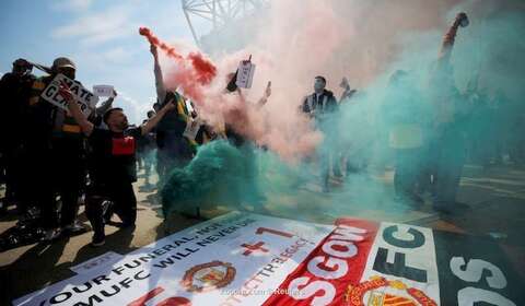 وتأجلت مباراة القمة بين يونايتد وضيفه ليفربول في الدوري الممتاز، الأحد، بعد أن شقت جماهير يونايتد، طريقها إلى أرض الملعب، واقتحمت ملعب أولد ترافورد للاحتجاج على عائلة غليزر المالكة للنادي.