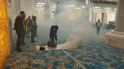 وأوضح البيان أن اختبار الجاهزية المذكور شمل “محاكاة حدوث حريق وانتشار الدخان داخل فضاء قاعة الصلاة عقب صلاة العشاء، بحضور المصلين”.
