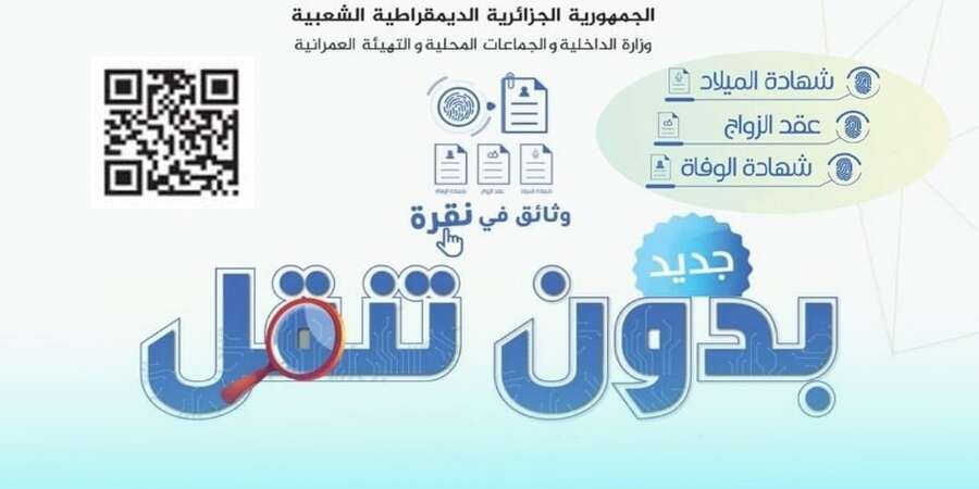 وجاء في منشور بالصفحة الرسمية للوزارة على موقع الفايسبوك، تحت شعار “الإدارة الإلكترونية في خدمتكم”، أن “بإمكانك استخراج وثائق الحالة المدنية عن بعد وذلك بالنسبة لشهادات الميلاد والوفاة وعقد الزواج”. وأوضح نفس المصدر أنه يتم استخراج شهادة الميلاد عبر الرابط التالي: :https://etatcivil.interieur.gov.dz/ActeNaissance/