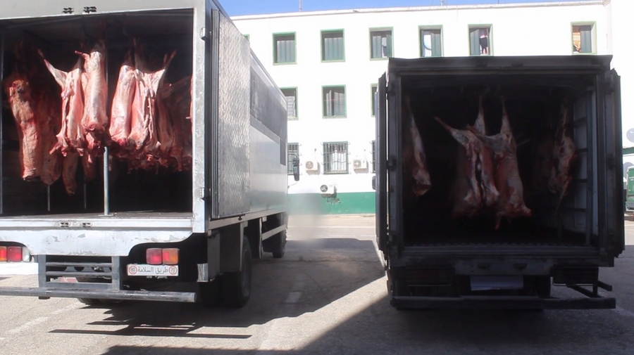 وأوضح البيان أنه “على إثر معلومات واردة إلى مستخدمي المجموعة الإقليمية للدرك الوطني بالجلفة مفادها أن أحد الموردين يقوم بنقل وتحويل اللحوم الحمراء من الجنوب دون الختم البيطري لولايات الجنوب إلى أحد المذابح بالمدن الشمالية ليتم وسمها بالختم الخاص بذات المذبح واستخراج وثائق إدارية مزورة على أساس أنها محلية”.