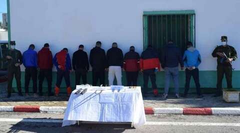 حيث تم تنقل على وجه السرعة إلى عين المكان الذي تم تطويقه من كل الجهات،تمكنت مصالح الأمنية من توقيف 10اشخاص. وحجز أسلحة بيضاء تتمثل في 2بندقيتين صيد بحري وسيفين بطول متر وسيف اخر حجم 60سنتيم. بالإضافة إلى 5مقذوفات نارية، وتم ععلى إثر ذلك تحرير محضر ارتكاب جناية تكوين عصابة احياء لغرض إثارة الرعب وسط السكان وإحالة الموقوفين على جهات القضائية المختصة