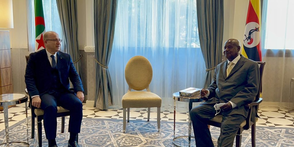 وكان الرئيس الأوغندي قد أجرى في وقت سابق اليوم، بمقر رئاسة الجمهورية، محادثات مع رئيس الجمهورية، السيد عبد المجيد تبون، توسعت بعدها الى أعضاء وفدي البلدين, وتوجت بالتوقيع على اتفاقيتين وخمس مذكرات تفاهم.