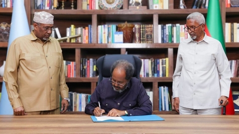 وقع الرئيس الصومالي حسن شيخ محمود على قانون إلغاء الاتفاقية المبرمة بين حكومة إثيوبيا وإقليم أرض الصومال بشأن المنفذ البحري والذي وافق عليه مجلسا البرلمان الصومالي، وفق اعلام محلي، الاحد.