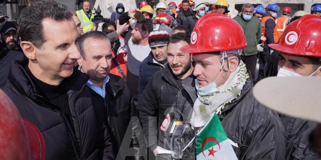 كما أشاد الرئيس السوري، بشار الاسد خلال تنقله الى منطقة بستان القصر بمدينة حلب المنكوبة، بجهود فرق الحماية المدنية الجزائرية و الهلال الاحمر الجزائري المتواجدة ببلاده للمشاركة في عمليات الانقاذ والبحث عن المفقودين جراء الزلزال الذي ضرب الاثنين الماضي كلا من سوريا وتركيا