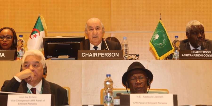 أكد رئيس الجمهورية، السيد عبد المجيد تبون، الجمعة، بمقر الاتحاد الإفريقي بأديس أبابا، التزام وحرص الجزائر على تفعيل ودعم دور الآلية الإفريقية للتقييم من قبل النظراء لمواجهة مختلف التحديات، لاسيما ترسيخ سيادة القانون ومكافحة الفساد وتعزيز العدالة الاجتماعية وحقوق الإنسان.