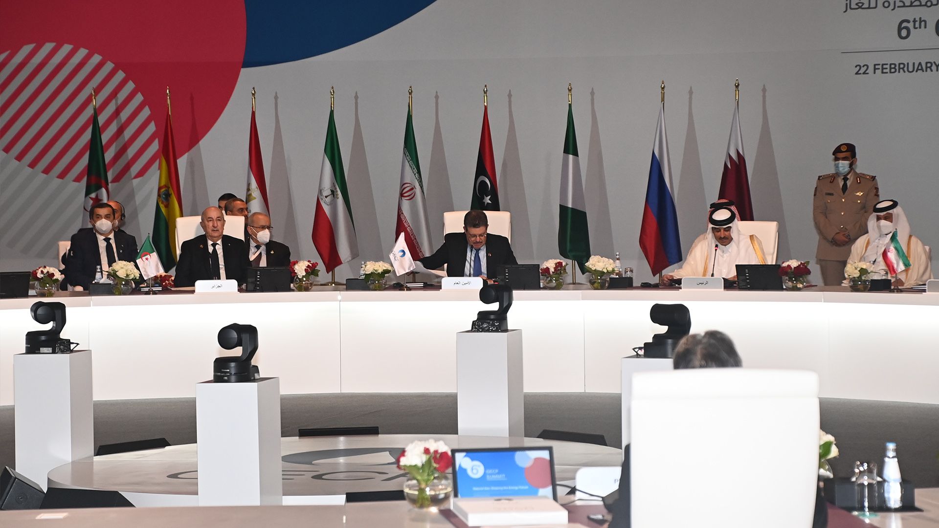 وفي خطاب ألقاه خلال أشغال القمة السادسة لرؤساء دول وحكومات المنتدى، صرح الرئيس تبون قائلا: “أتمنى وسيكون من دواعي سروري استقبالكم بالجزائر، بمناسبة انعقاد القمة المقبلة إن شاء الله وبهدف تعزيز دور الدول المصدرة للغاز للحفاظ على مصالحها، كما دعا رئيس الجمهورية إلى فتح حوار مع الدول المستهلكة التي اعتمدت الغاز كمحرك مهم وأساسي لتقدم اقتصادها، وشدد على ضرورة البحث المشترك عن أفضل الطرق والوسائل لضمان مكانة للغاز الطبيعي في الأنظمة الطاقوية وتثمين قيمته في الأسواق الدولية. فمن ناحية يعتبر الغاز الطبيعي طاقة للحاضر والمستقبل، طاقة نظيفة مرنة يمكن الوصول إليها، وهي أيضا طاقة مفضلة لحماية البيئة بمعية الطاقات المتجددة. كما أوضح الرئيس عبد المجيد تبون، أن الغاز الطبيعي يعتبر طاقة للحاضر والمستقبل، طاقة نظيفة، مرنة، يمكن الوصول إليها وهي أيضا طاقة مفضلة لحماية البيئة بمعية الطاقات المتجددة ومن ناحية أخرى، يحتل الغاز الطبيعي -يضيف رئيس الجمهورية- مكانة متميزة في العلاقات الاقتصادية الدولية، فبلداننا تمتلك احتياطات هامة من الغاز الطبيعي وتؤمن نصيبا كبيرا من إنتاج الغاز والمبادلات الغازية، غير أن هذه الطاقة تعتبر طاقة غير متجددة ويتطلب تطويرها استثمارات ضخمة، وعليه، يقول السيد تبون، لا بد من إيجاد حلول تكنولوجية فعالة ومعتبرة لتحسين جودة الغاز الطبيعي كطاقة نظيفة لضمان وفرتها وقدرتها التنافسية في الأنظمة الطاقوية، ولهذا الغرض، يمكن لمنتدانا استغلال معهد أبحاث الغاز المتواجد بالجزائر لرفع هذا التحدي.