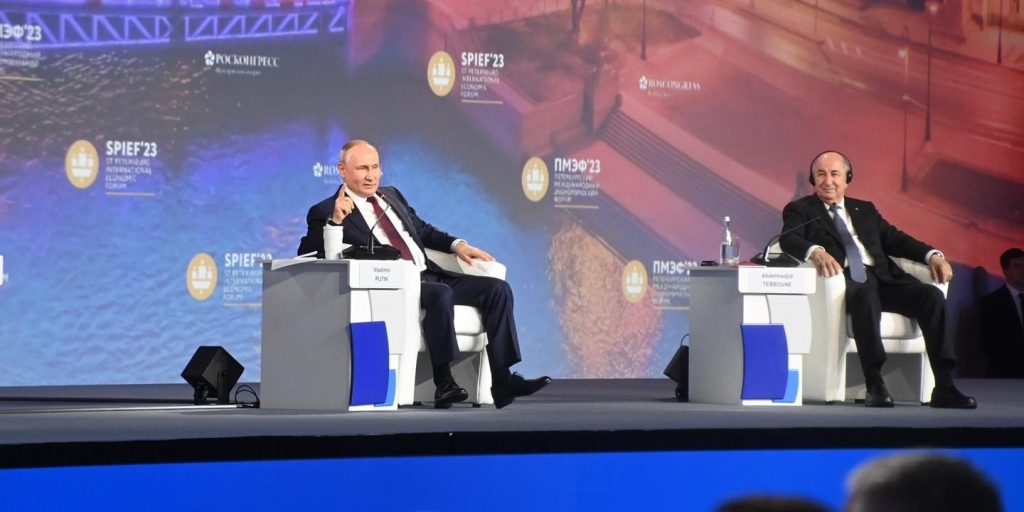 شكر الرئيس الروسي فلاديمير بوتين، رئيس الجمهورية عبد المجيد تبون، على جهود الوساطة لتسوية الأزمة الروسية الأوكرانية، وحضوره منتدى بطرسبورغ الاقتصادي الدولي، وهو ما اعتبره نابعا من كونه زعيما، وكونه يحترم مصالحه الوطنية ومصالحنا جميعا.