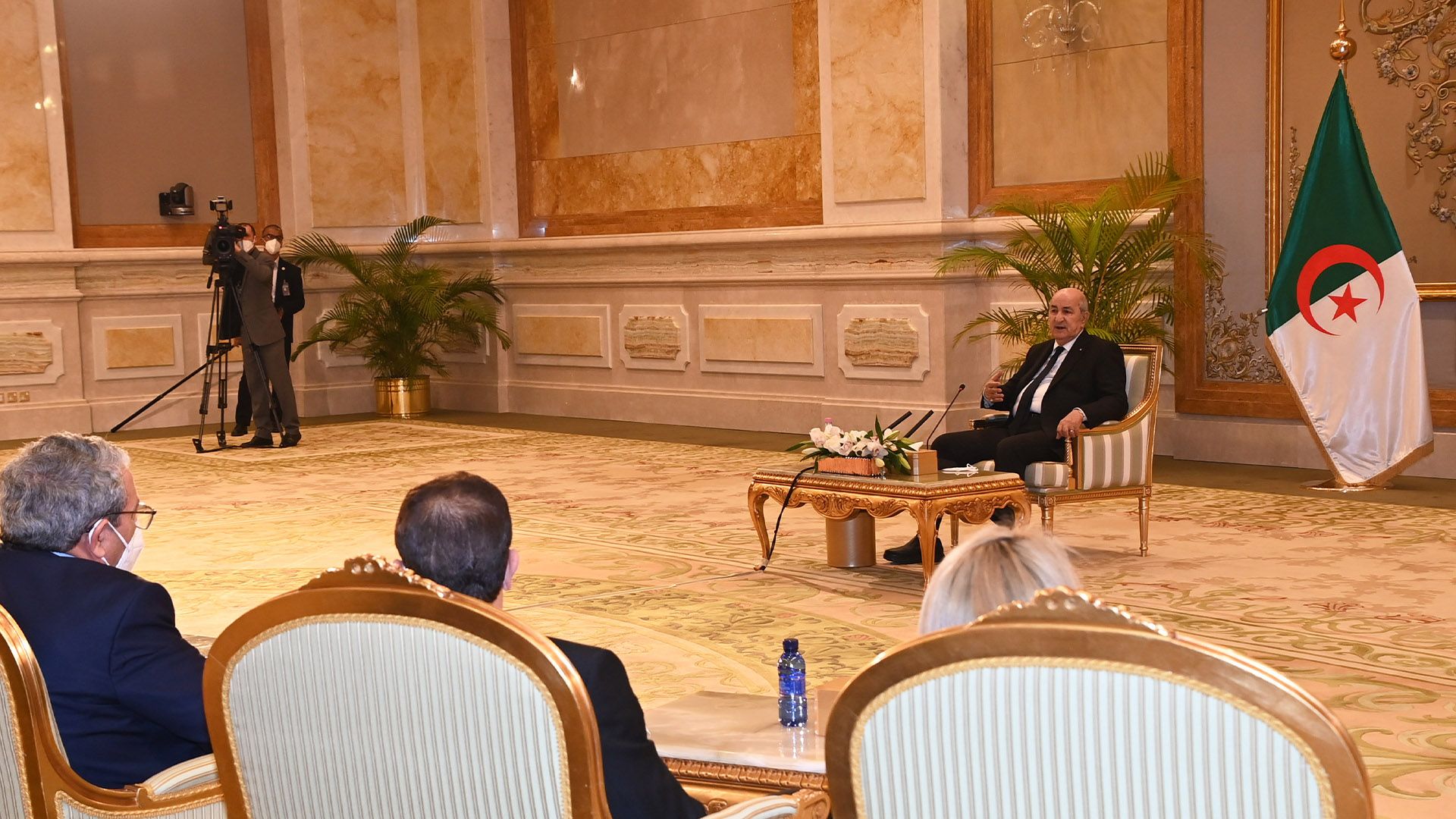 التقى رئيس الجمهورية، عبد المجيد تبون، الثلاثاء، بالعاصمة الكويتية، بأفراد من الجالية الوطنية المقيمة بالكويت، على هامش الزيارة الرسمية التي شرع فيها، حيث أكد في هذا اللقاء، أن الجزائر الجديدة سلوكات قائمة وليست أشخاصا، كما وعد بوضع قواعد اسثتمار شفافة لكل المتعاملين سواء وطنيين أو أجانب في قانون الاستثمار الجديد وحل ملف التقاعد الخاص بالجالية المتواجدة ببعض البلدان.
