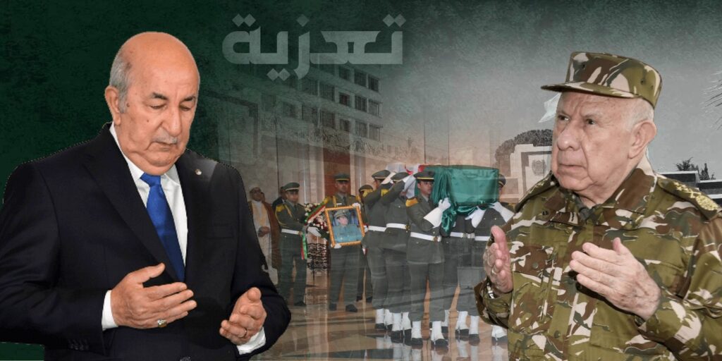 وجاء في التعزية، يتقدم رئيس الجمهورية، القائد الأعلى للقوات المسلحة، وزير الدفاع الوطني، السيد عبد المجيد تبون، بأسمى عبارات التعازي والمواساة لعائلة الفقيد وإلى كل أفراد الجيش الوطني الشعبي راجيا من المولى عز وجل أن يتغمده بواسع رحمته ويسكنه فسيح الجنان.