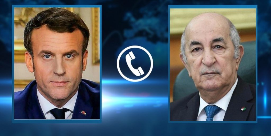 تلقى رئيس الجمهورية، السيد عبد المجيد تبون، الأحد، مكالمة هاتفية من نظيره الفرنسي، السيد إيمانويل ماكرون، استعرضا فيها العلاقات الثنائية معربين عن ارتياحهما للتطور الإيجابي والمستوى الذي عرفته هذه العلاقات، حسب ما أورده بين لرئاسة الجمهورية.