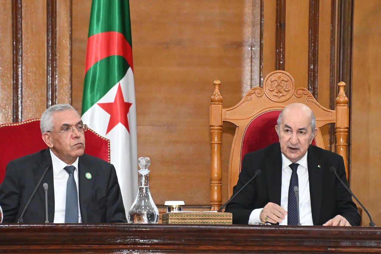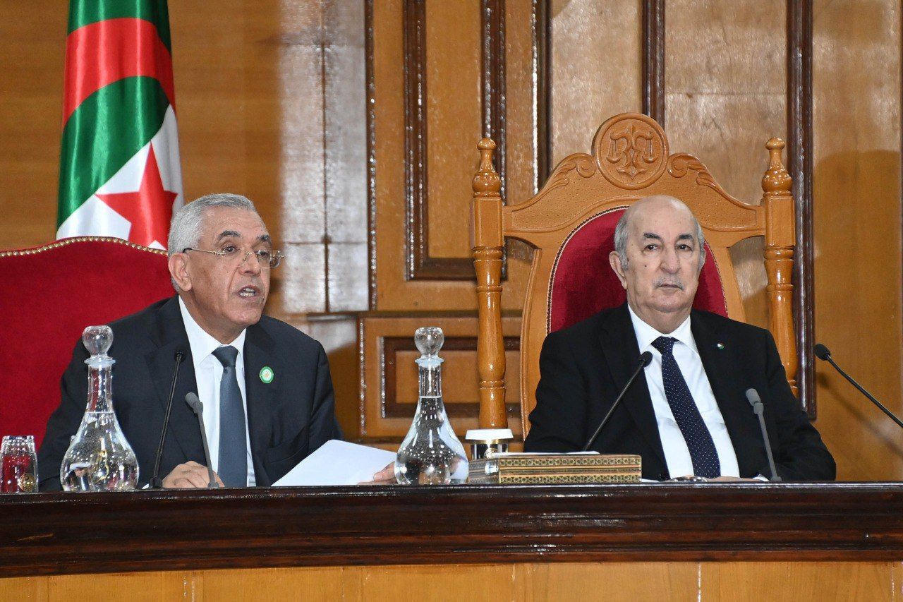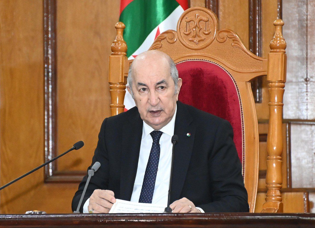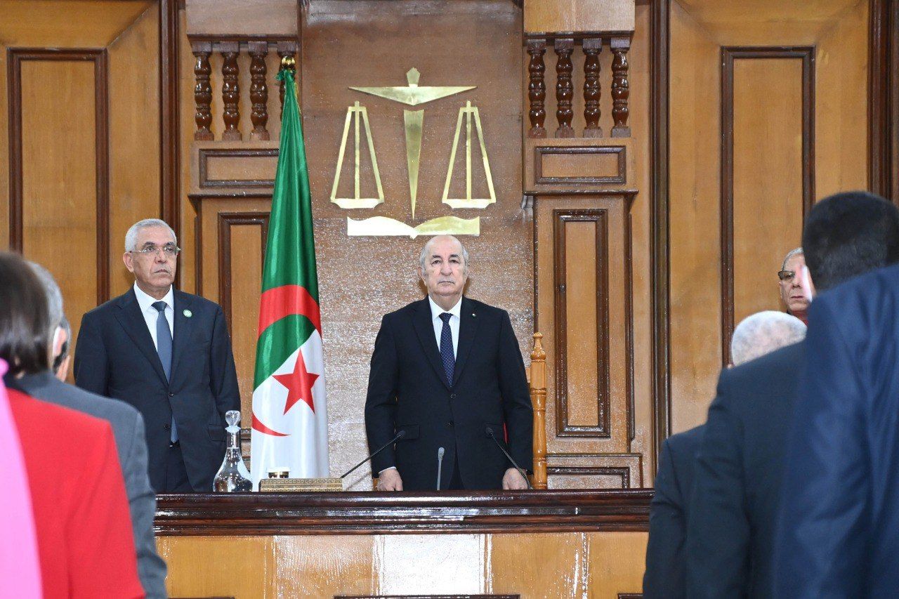 وأعرب رئيس الجمهورية عن قناعته، بأن العدالة الجزائرية تتوفر على كل أسباب الارتقاء إلى مستويات تعكس بالفعل الإمكانيات المسخرة، سواء تعلق الأمر بالمورد البشري أو بالوسائل المادية، مشيرا إلى الصرامة التي تصدت بها المحاكم للأفعال الإجرامية التي سعى أصحابها إلى زرع الهلع والفوضى وإلى الحزم الذي يبديه جهاز العدالة إزاء نشر الأخبار الكاذبة وخطابات الكراهية واستعمال وسائل الإعلام والاتصال لأغراض هدامة، وقال أن كل ذلك دليل على الوجه الجديد للعمل القضائي ولقطاع العدالة الذي أوضح أنه يشكل نموذجا للتغييرات الجديدة والعميقة التي نجسدها تدريجيا في الواقع، مشيرا إلى أن هذه التغييرات تؤسس لبناء دولة قادرة على حماية الاقتصاد الوطني من أخطار النهب والفساد بسلاح القانون وبتكريس قواعد الشفافية للمحافظة على المال العام وتندرج في صلب تحقيق مطالب وطموحات الشعب الجزائري وتتيح له العيش في جزائر ديمقراطية وفية لقيم الفاتح نوفمبر ولرسالة الشهداء الأبرار. وختم رئيس الجمهورية كلمته، بالإشارة إلى تزامن افتتاح السنة القضائية الجديدة مع الذكرى الـ68 لاندلاع ثورة التحرير المجيدة في الفاتح من نوفمبر، والتي قال أن الشعب الجزائري يحييها باعتزاز وفخر وشموخ في جزائر لم يعد فيها ذلك الشرخ الذي لطالما باعد بين المواطن ورموز الدولة ومؤسساتها، جزائر تسير بحزم وعزم وبإرادة الوطنيين المخلصين للقضاء على كل مظاهر الهشاشة والغبن والاحتقار المسيئة لهذا الوطن المفدى.