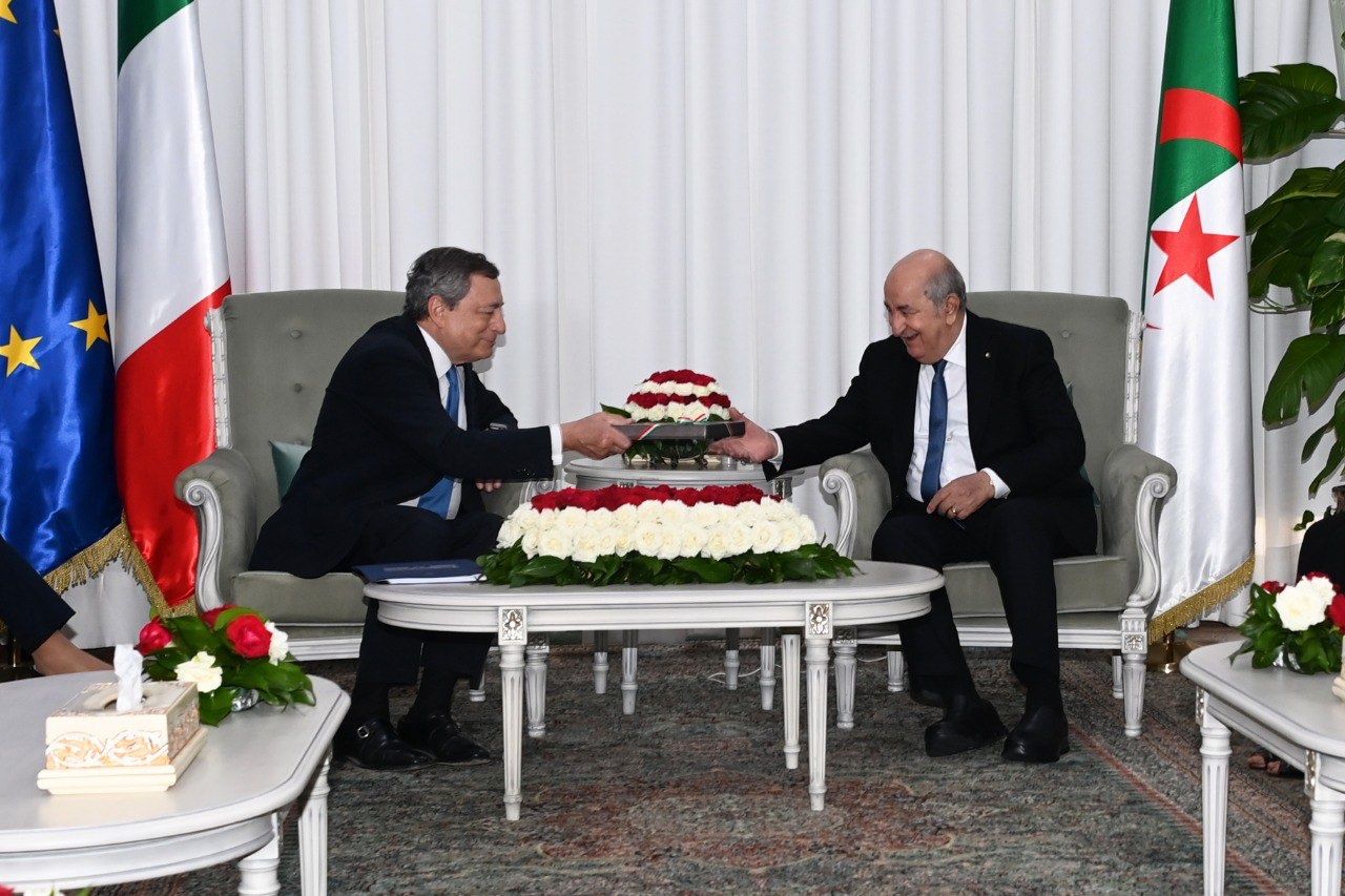 استقبل رئيس الجمهورية، السيد عبد المجيد تبون، اليوم الاثنين بمقر رئاسة الجمهورية، رئيس مجلس الوزراء الإيطالي، السيد ماريو دراغي، الذي يقوم بزيارة عمل الى الجزائر.