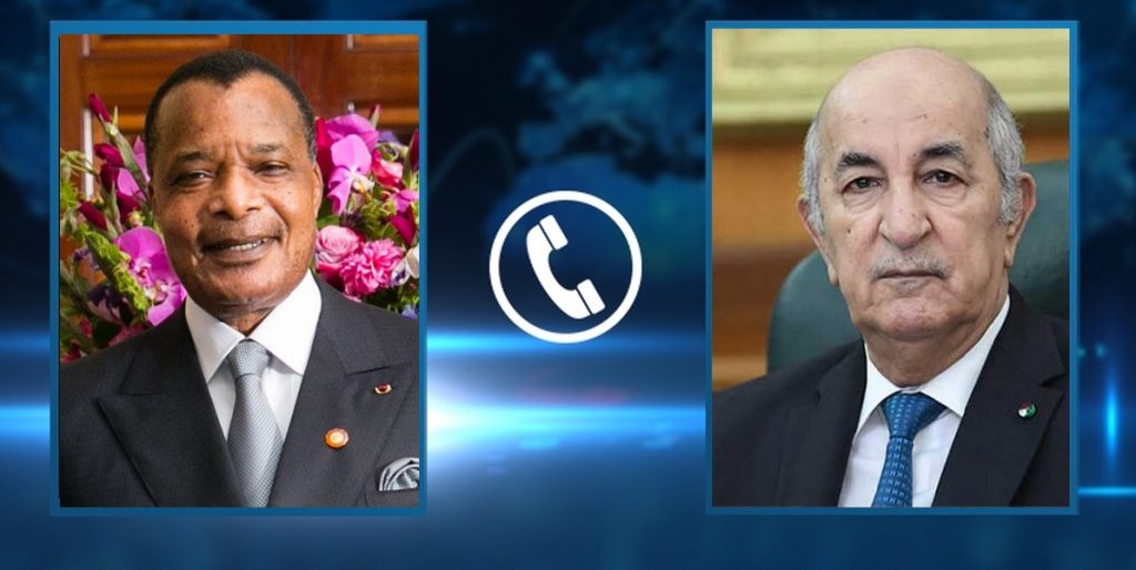تحادث رئيس الجمهورية، السيد عبد المجيد تبون، الأربعاء، في اتصال هاتفي مع رئيس جمهورية الكونغو، السيد دونيس ساسو نقيسو، أكد له خلاها دعم الجزائر ووقوفها إلى جانب ممثل الاتحاد الإفريقي من أجل المصالحة الوطنية في ليبيا، حسب ما أفاد به بيان لرئاسة الجمهورية.