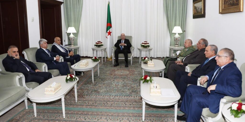 وجاء في البيان استقبل رئيس الجمهورية السيد عبد المجيد تبون اليوم الفريق جبريل الرجوب أمين سر اللجنة المركزية لحركة فتح الفلسطينية. وحضر اللقاء عن الجانب الجزائري رئيس أركان الجيش الوطني الشعبي السيد الفريق أول السعيد شنقريحة ومدير ديوان رئاسة الجمهورية بالنيابة السيد بوعلام بوعلام والمدير العام للأمن الداخلي اللواء جمال كحال والأمين العام لوزارة الشؤون الخارجية والجالية الوطنية بالخارج السيد لوناس مقرمان