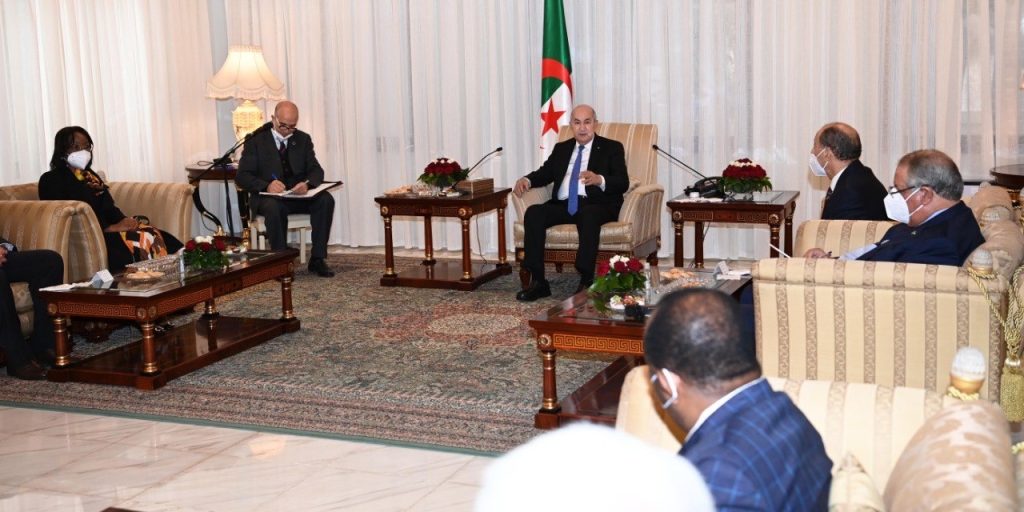 وقد حضر الاستقبال السيد عمر بلحاج رئيس المحكمة الدستورية، السيد عبد العزيز خلف مدير ديوان رئاسة الجمهورية والسيد بوعلام بوعلام مستشار لدى رئيس الجمهورية مكلّف بالشؤون القانونية والقضائية.