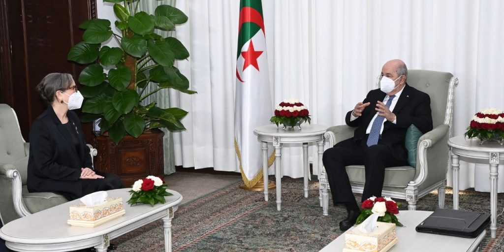 وجاء في بيان لرئاسة الجمهورية: “استقبل، هذا المساء رئيس الجمهورية، السيد عبد المجيد تبون، رئيسة حكومة الجمهورية التونسية، السيدة نجلاء بودن”. وحضر اللقاء، عن الجانب الجزائري، الوزير الأول، السيد أيمن بن عبد الرحمن، وزير الخارجية والجالية الوطنية بالخارج، السيد رمطان لعمامرة، ومدير ديوان رئاسة الجمهورية، السيد عبد العزيز خلف، وعن الجانب التونسي، وزير الشؤون الخارجية والهجرة والتونسيين بالخارج، السيد عثمان الجرندي.