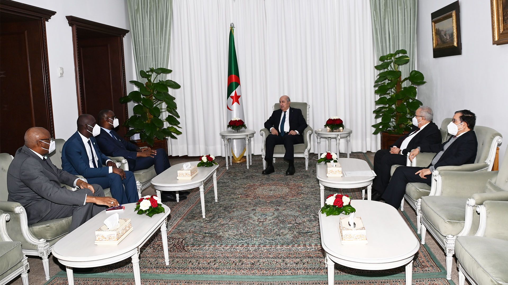 استقبل رئيس الجمهورية، عبد المجيد تبون، كلا من عبد اللاي ديوب، وزير الخارجية والتعاون الدولي لجمهورية مالي، والعقيد الركن اسماعيل واق، وزير المصالحة والسلم والتلاحم الوطني لجمهورية مالي.