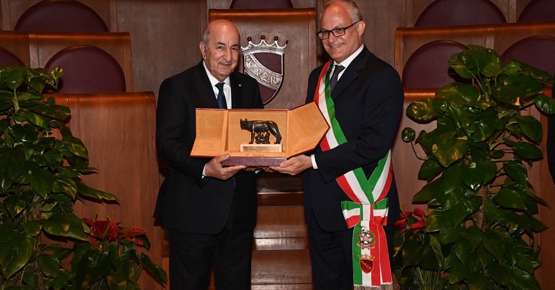 وقد كرم الرئيس تبون، على هامش هذه الزيارة، من قبل عمدة بلدية روما روبيرتو غوالتيري، برمز مدينة روما “LA LOUVE” .
