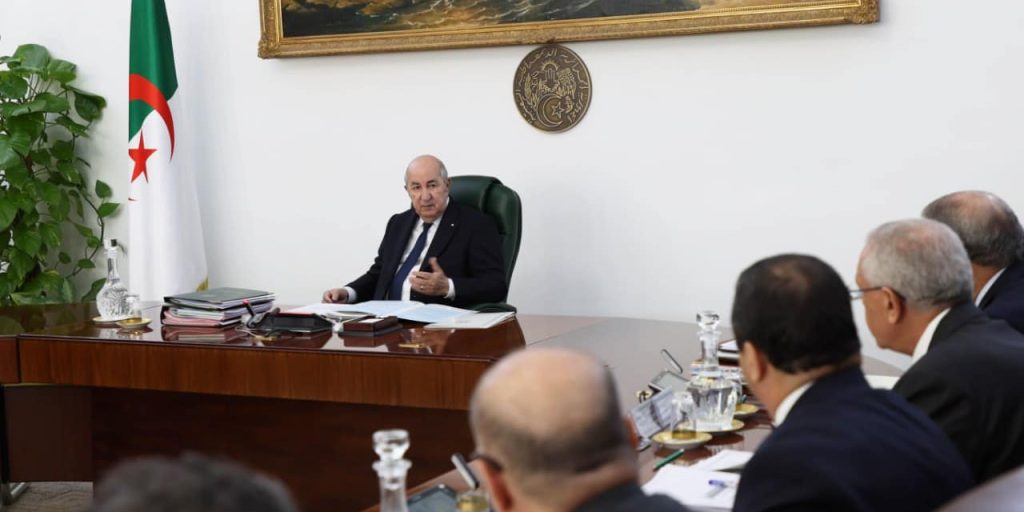 ترأس السيد عبد المجيد تبون رئيس الجمهورية القائد الأعلى للقوات المسلحة وزير الدفاع الوطني، إجتماعا لمجلس الوزراء، تناول عروضا منها وضعية صوامع تخزين الحبوب، مصنع الإسمنت بالجلفة، ومشروع مصنع الإسمنت بالأبيض سيدي الشيخ بالبيّض، متابعة مشروعي إنجاز المدينة الإعلامية “دزاير ميديا سيتي”، الخط المنجمي للسكة الحديدية: بشار ـ تندوف ـ غارا جبيلات، ووضعية محطات تحلية مياه البحر، بالإضافة إلى دراسة معطيات توازن تموين الأسواق الوطنية حسب ما أفاد به بيان لرئاسة الجمهورية .