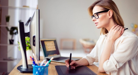 ومع مرور الوقت، يمكن أن يؤدي هذا الوضع إلى تشويه عضلات الكتف والصدر والرقبة والضغط على العمود الفقري. وينتج هذا عن الإرهاق الناجم عن 10 ساعات من العمل اليومي مع الكومبيوتر والهاتف.