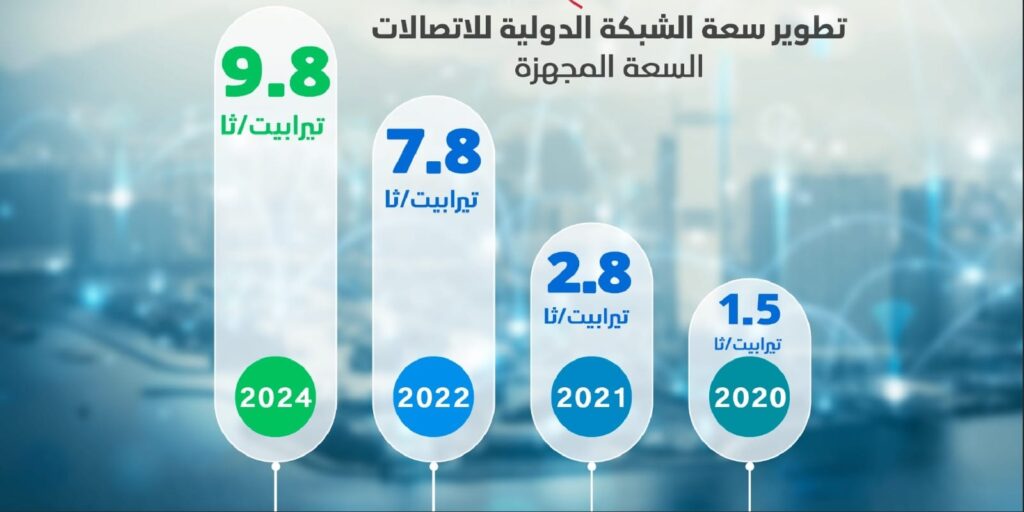 أعلنت وزارة البريد والمواصلات السلكية واللاسلكية اليوم في بيان لها أنه في إطار تدعيم القدرات الوطنية في مجال عرض النطاق الترددي الدولي، تم الانتهاء من عملية رفع جديد للسعة المجهزة للشبكة الدولية للاتصالات لبلادنا، لتصل إلى 9.8 تيرابيت/ثا، بعد أن كانت تقدر بـ 7.8 تيرابيت/ثا سنة 2022 و 2.8 تيرابيت/ثا سنة 2021 و 1.5 تيرابيت/ثا في بداية سنة 2020.