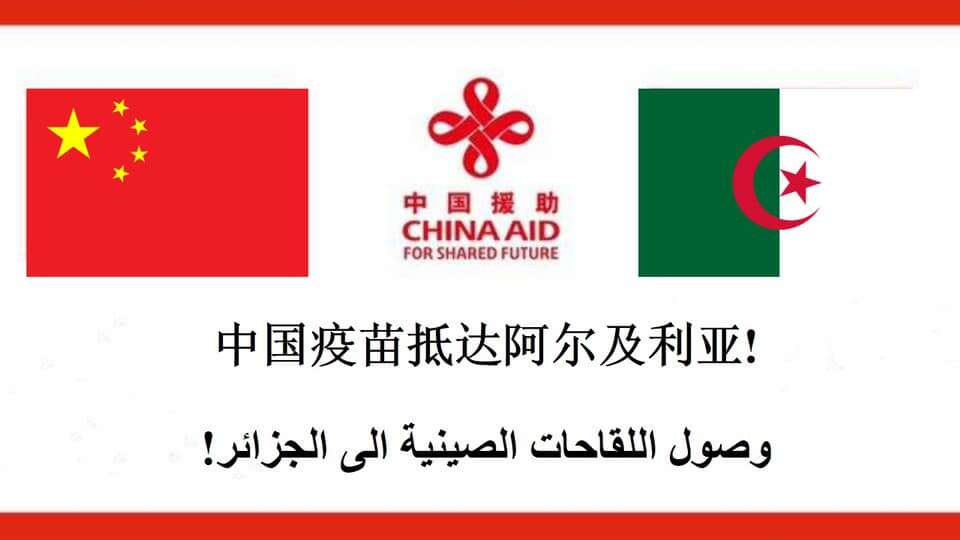 تسلمت الان الجزائر حسب السفارة الصيية هبة من الصين متمثلة في كمية كبيرة من جرعات اللقاح الصيني المضاد لفيروس كورونا المستجد التي وعدت بها في وقت سابق.