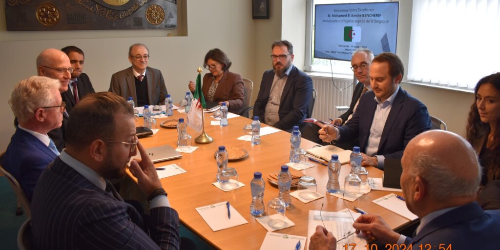 نظم السفير الجزائري ببروكسل، بالتنسيق مع غرفة التجارة العربية-البلجيكية، الليكسبورغواز، طاولة مستديرة حول الاقتصاد الجزائري في إطار دور الدبلوماسية في بناء وتطوير العلاقات الاقتصادية وترقية الشراكة مع المستثمرين بالجزائر.