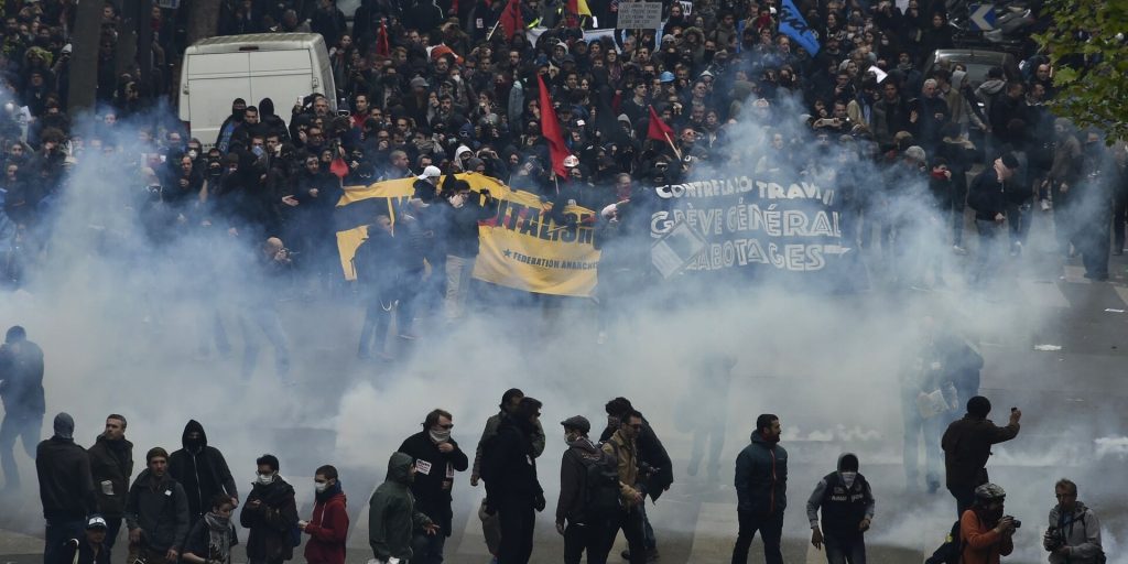 استخدمت الشرطة الفرنسية الغاز المسيل للدموع مساء الخميس، لتفريق حوالي 4 آلاف متظاهر عبروا عن استيائهم من قانون إصلاح نظام التقاعد الذي قامت رئيسة الوزراء الفرنسية، إليزابيث بورن، الخميس، بتفعيل مادة من الدستور لتمريره من قبل الحكومة وهو خرق واضح لحقوق الإنسان الذي لا تزال تستعمله شماعة للتدخل في الشؤون الداخلية للدول خاصة الإفريقية.