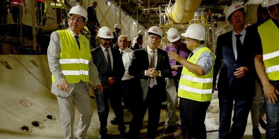 وأوضح الوزير خلال لقاء صحفي، عقب زيارة العمل والتفقد التي قادته لورشات توسيع خط المترو الرابط بين الحراش-مطار هواري بومدين وعين النعجة-براقي، أن أشغال الهندسة المدنية للخط الأول الذي يمتد على طول 5،9 كلم ويحتوي على 9 محطات والخط الثاني بطول 6 كلم ويتوفر على 6 محطات قد تم استكمالها تقريبا. كما أضاف، أن إجراءات إطلاق ورشات تهيئة المحطات وتجهيز النفق ووضع السكك على مستوى الخطين قد تم استكمالها، مشيرا إلى أن هذه الورشات ستنطلق قبل نهاية السنة، وأن وزارته تعمل على تسليم مشروع التوسعتين بحلول سنة 2026. وقال السيد شرفة في ذات السياق، إن مجمع “كوسيدار” المكلف بأشغال خطي التوسعة قد طلب منه بدء التحضيرات لإطلاق أشغال التهيئة والتجهيز”. أما فيما يخص النظام الكلي للتسيير والذي يتضمن الكهرباء والتهوية والاتصالات السلكية واللاسلكية، فقد أكد الوزير، أن هذه الورشة ستتكفل بها مؤسسات دولية مختصة في هذا المجال، وذلك في إطار مجمع يضم مؤسسة كوسيدار. وهنأ السيد شرفة بهذه المناسبة، المجمع العمومي “كوسيدار” نظير التحكم في الإنجاز والتقنية والكفاءات المستعملة في المشروع، مؤكدا أن المجمع الذي يعتبرمفخرة البلاد، قد وفر جميع الوسائل والإمكانيات من أجل تجسيد مشروع توسعة مترو الجزائر. كما زار الوفد الوزاري في هذا الصدد، مشروع خط الحراش-مطار هواري بومدين، حيث حضر عرضا للأشغال قبل الشروع في زيارة إلى ورشة هذا الخط، حيث المحطات التسع (9) مجهزة بسلالم كهربائية ومصاعد لفائدة الأشخاص ذوي الاحتياجات الخاصة.