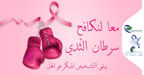 وفي الجزائر تقوم جمعية الأمل لمساعدة الأشخاص المصابين بالسرطان خلال هذا الشهر بواحدة من أوسع حملات التوعية بمخاطر مرض سرطان الثدي في الجزائر، وهي خطوة دأبت الجمعية على تنظيمها طيلة شهر أكتوبر من كل عام باعتباره الشهر العالمي لمكافحة سرطان الثدي.