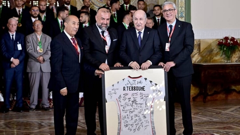 وقد سلم مندوبون من نادي اتحاد الجزائر لرئيس الجمهورية قميصا للفريق موشح باسمه ويحمل توقيعات اللاعبين والطاقم الفني.