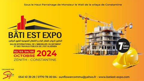 من المنتظر إن يتم تنظيم الطبعة السابعة من الصالون الدولي للبناء والعقار والأشغال العمومية للشرق الجزائري في الفترة بين 2 و 5 أكتوبر المقبل، بالمركب الثقافي أحمد باي- الزينيت، بقسنطينة.