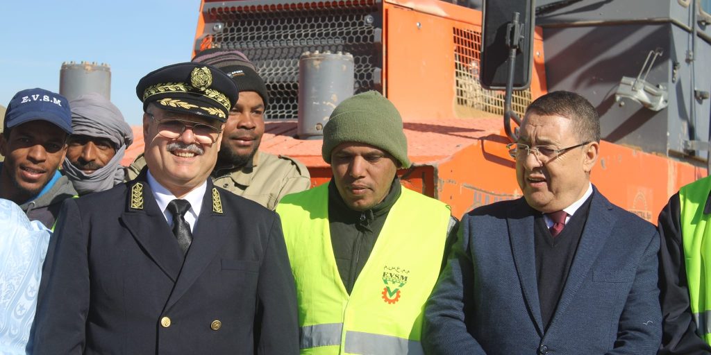 وعاين الوفد الوزاري إحدى ورشات إنجاز الطريق الوطني رقم (6 ) على مسافة 140 كلم بالنقطة الكيلومترية 60 من هذا المحور الذي يشمل خط رقان – برج باجي مختار- تيمياوين على مسافة 550 كلم، حسب الشروحات المقدمة بذات الموقع.