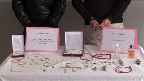 و”مكنت التحريات التي قام بها عناصر المصلحة تحت إشراف وكيل الجمهورية المختص إقليميا, من تحديد هوية المشتبه فيهما وتوقيفهما في ظرف وجيز, حيث وبعد تفتيش منزليهما, تم ضبط وحجز كمية من المعدن الأصفر والأبيض ( أطقم من الذهب سلاسل, أساور, أقراط وأحجار كريمة) وساعات يدوية وعطور” .