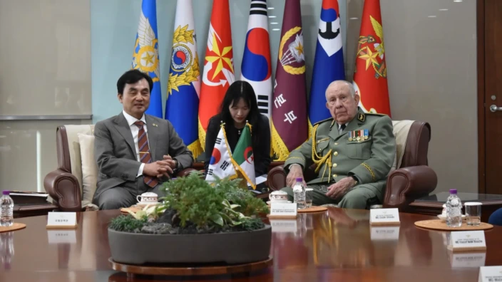 وأوضح المصدر ذاته، أنه خلال اليوم الخامس والأخير من الزيارة الرسمية التي يقوم بها إلى جمهورية كوريا، استقبل السيد الفريق أول السعيد شنقريحة، الوزير المنتدب لدى وزير الدفاع الوطني، رئيس أركان الجيش الوطني الشعبي يوم 23 أكتوبر 2025، من قبل السيد آن غيو باك، وزير الدفاع الكوري. وأضاف البيان، أن الاستقبال الذي حضره مسؤولون عسكريون كوريون سامون، إلى جانب أعضاء الوفد العسكري الجزائري، خصص لتقييم حالة التعاون العسكري الثنائي بين الجزائر وجمهورية كوريا، وآفاق تطويره ليرتقي إلى مستوى الشراكة الاستراتيجية التي تربط البلدين الصديقين , وخلال هذا اللقاء ألقى السيد الفريق أول، كلمة حرص من خلالها على تبليغ مضيفه تحيّات السيد رئيس الجمهورية، متمنيا أن تشكل هذه الزيارة لبنة جديدة على مسار ترسيخ علاقات تعاون تخدم مصالح البلدين”. وقال بالمناسبة: “أود، في البداية، أن أتقدم إليكم بعبارات الشكر والتقدير على الدعوة الكريمة لحضور فعاليات معرض سيول الدولي للطيران والدفاع ADEX-2025، متمنيا أن تشكل هذه الزيارة لبنة جديدة على مسار ترسيخ علاقات تعاون تخدم مصالح بلدينا وتحقق تطلعات مؤسستينا العسكريتين”. وتابع قائلا: “كما أغتنم هذه السانحة لأبلغكم تحيّات السيد عبد المجيد تبون، رئيس الجمهورية الجزائرية الديمقراطية الشعبية، القائد الأعلى للقوات المسلّحة، وزير الدفاع الوطني، الذي يولي أهمية خاصة لتعزيز العلاقات مع جمهورية كوريا”. كما أكد الفريق أول، بالمناسبة تطلعه للارتقاء بالتعاون العسكري الثنائي بين جيشي البلدين إلى أعلى المستويات، مشيدا بإرادة قيادتي البلدين لإعطاء التعاون الثنائي بعده المستحق وفي هذا السياق، أوضح قائلا: “بالفعل، تطورت العلاقات الجزائرية-الكورية تدريجيا منذ إقامة العلاقات الدبلوماسية بين الجانبين، وشهدت في السنوات الأخيرة دفعا متجددا تجسد في تبادل زيارات رفيعة المستوى لمسؤولي البلدين والتوقيع على عدة اتفاقيات في مختلف المجالات”. من جهته عبر السيد آن غيو باك، وزير الدفاع لجمهورية كوريا، عن استعداد بلاده لتطوير التعاون الثنائي مع بلادنا لا سيما في مجال الدفاع، معربا عن أمله في استفادة الوفد الجزائري من فعاليات المعرض والاطلاع على القدرات التكنولوجية وفي الأخير تبادل الطرفان هدايا رمزية ليوقّع عقب ذلك السيد الفريق أول، على السجل الذهبي للوزارة مع أخذ صورة تذكارية بالمناسبة.