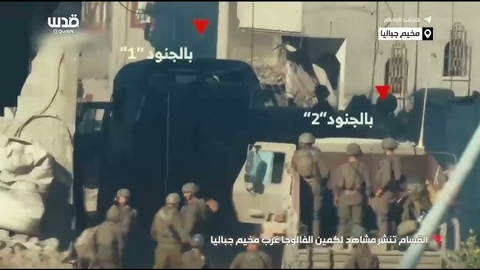 عرضت كتائب القسام، الجناح العسكري لحركة (حماس)، السبت مشاهد من الكمين الذي نفذته الأسبوع الماضي واستهدف شاحنات وآليات عسكرية محملة بجنود الاحتلال “الإسرائيلي” قرب مفترق الاتصالات غربي مخيم جباليا شمال قطاع غزة.