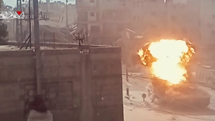 بثت كتائب القسام، مشاهد لاستهداف دبابة ميركافا للاحتلال، خلال توغلها في شارع الصناعة بمنطقة تل الهوا بمدينة غزة.