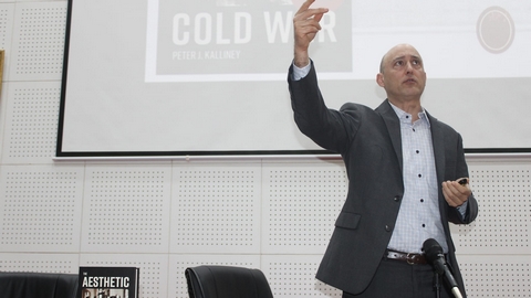 ويعتبر بيتر جوزيف كاليني، دكتور متخصص في اللغة والأدب الإنجليزي بجامعة ميشغان الأمريكية، ومدير مركز البحث في العلوم الإنسانية والإجتماعية بجامعة كينتاكي بأمريكا، وصاحب عدة مؤلفات وكتب باللغة الإنجليزية. وقدم الكاتب بيتر جوزيف كاليني، محاضرة قدم من خلالها آخر مؤلفاته -جماليات الحرب الباردة-، والذي تناول من خلاله كيفية تأثير الحرب الباردة على الأدب في إفريقيا وآسيا ومنطقة البحر الكاريبي، وطريقة تأثير القوى العظمى في العالم على الاستعمار بطرق مختلفة، وذلك من وجهة نظر العديد من الكتاب من إفريقيا وآسيا. ولقيت المحاضرة، حضورا وتفاعلا واسعا من قبل أساتذة وطلبة قسم اللغة الإنجليزية.