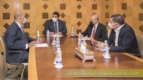وجمع اللقاء رئيس المجلس الرئاسي محمد المنفي ونائبيه عبدالله الكافي وموسى الكوني، ورئيس الحكومة عبد الحميد الدبيبة، مع أعضاء اللجنة العسكرية 5+5 لحكومة الوفاق.