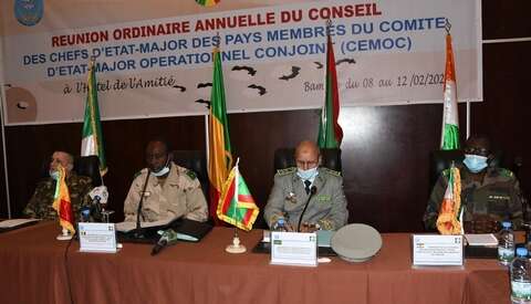 وأوضح البيان أن اجتماع رؤساء أركان مالي والجزائر وموريتانيا والنيجر ركز على دراسة وتقييم الحالة الأمنية في المنطقة وتبادل التحاليل والدروس المستخلصة منذ الاجتماع الأخير لمجلس رؤساء الأركان لدول أعضاء لجنة الأركان العملياتية المشتركة، الذي انعقد يوم 30 سبتمبر 2019 بتمنراست.
