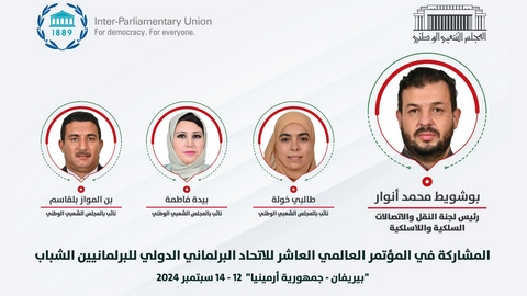 وأوضح المصدر ذاته، أن وفدا من المجلس الشعبي الوطني، بقيادة رئيس لجنة النقل والمواصلات والاتصالات السلكية واللاسلكية السيد محمد أنوار بوشويط، سيشارك في أشغال المؤتمر العالمي العاشر للاتحاد البرلماني الدولي للبرلمانيين الشباب والذي ستحتضنه مدينة “يريفان” بأرمينيا خلال الفترة الممتدة من 12 إلى 15 سبتمبر الجاري”.