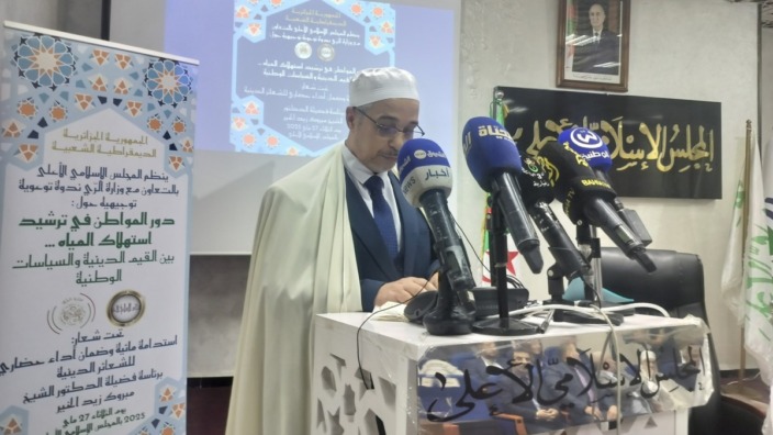 في إطار تعزيز الوعي بأهمية المياه كعنصر أساسي للحياة وضرورة ترشيد استهلاكه احتضن المجلس الإسلامي الأعلى، الثلاثاء، ندوة تحسيسية تحت عنوان “دور المسلم في ترشيد استهلاك المياه.. بين القيم الدينية والسياسات الوطنية”، بالتعاون مع شركة المياه والتطهير “سيال”.