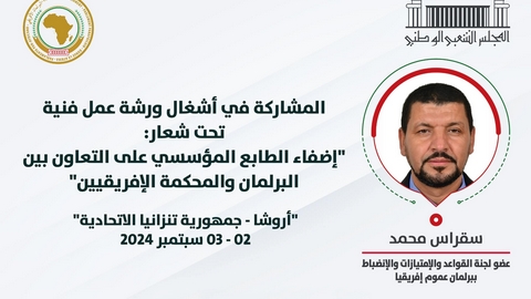 وأوضح نفس المصدر، أن المجلس الشعبي الوطني سيكون ممثلا في هذه الورشة التي تحمل شعار”إضفاء الطابع المؤسسي على التعاون بين البرلمان والمحكمة الإفريقيين”، بعضو لجنة القواعد والامتيازات والانضباط في برلمان عموم إفريقيا، محمد سقراط وتعد مشاركة المجلس في هذا الحدث فرصة لتعزيز دور الجزائر في دعم التكامل الإفريقي والمساهمة في تطوير مؤسسات الاتحاد الإفريقي وتدخل هذه الورشة –يضيف البيان– في إطار تعزيز الحوار المؤسسي بين الهيئات التشريعية والقضائية الإفريقية بهدف ترسيخ أسس التعاون البناء بين الهيئتين وذلك بمشاركة ممثلين عن مختلف البرلمانات الإفريقية وخبراء قانونيين.