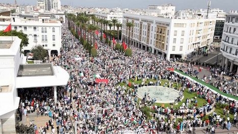 أعلنت الجبهة المغربية لدعم فلسطين ومناهضة التطبيع عن تنظيم وقفات واعتصامات ومسيرات ومختلف أشكال الاحتجاجات بسائر المدن المغربية الأحد المقبل.