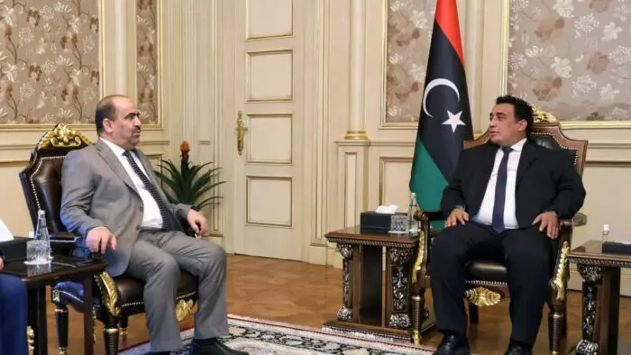 استقبل رئيس المجلس الرئاسي الليبي، محمد المنفي، سفير الجزائر لدى طرابلس، سليمان شنين، وذلك بمناسبة انتهاء فترة عمله في ليبيا.