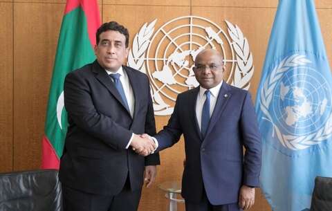 التقى رئيس المجلس الرئاسي محمد المنفي وزير خارجية المالديف “عبد الله الشاهد” الذي يتولى رئاسة الدورة الحالية للجمعية العامة للأمم المتحدة.وفق “اخبار ليبيا”، الثلاثاء.
