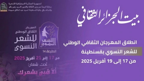 تحتضن دار الثقافة مالك حداد من 17 إلى 21 أفريل الجاري فعاليات المهرجان الثقافي الوطني للشعر النسوي في طبعته 14 تحت شعار “ألا هبّي بشعرك” بمشاركة 40 شاعرة من مختلف ولايات الوطن.